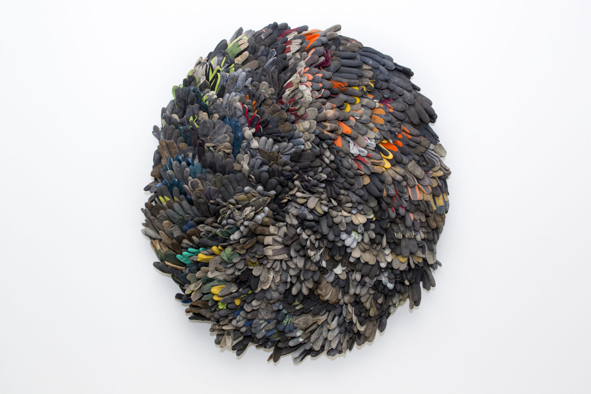 Ihoni on pehmeä – The work tells of the longing for touch and, at the same time, the fear and danger of a stranger. Work gloves have been collected from the streets of Kalasatama.